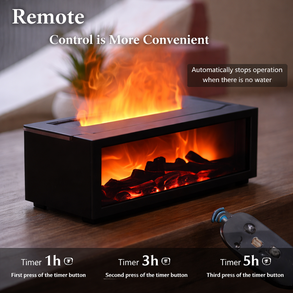 3D Flame Fireplace Aroma Diffuser – Cozy LED Mist Humidifier with Remote
