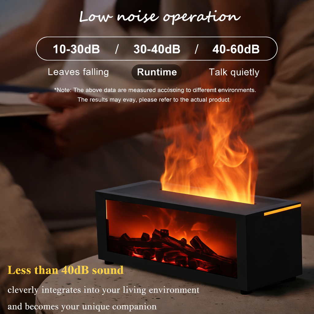 Transform any room into a warm and inviting space with a stunning 3D flame effect. Designed to mimic the look of a real fireplace, this diffuser creates a calming glow without heat or smoke — giving you all the comfort of a fire with complete safety and convenience.